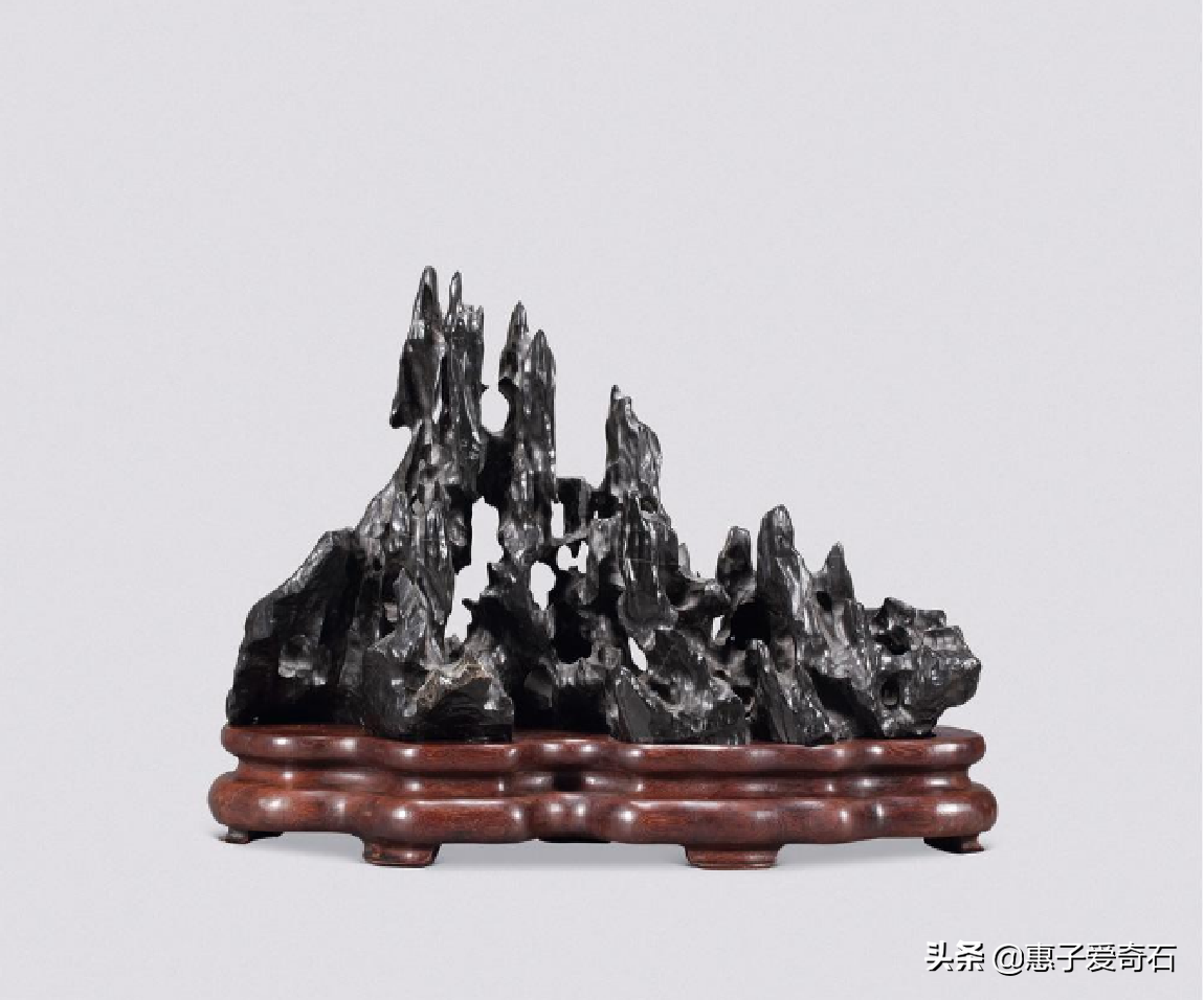据说当年乾隆帝六下江南三次都去了安徽灵璧县,感叹于灵璧石的美,乾隆封灵璧石为天下第一石。乾隆喜欢灵璧石到什么程度呢?他的御花园中很多灵璧石上目前还留有乾隆的题字,去过故宫御花园的朋友应该都见过。灵璧石主产于安徽灵璧县,硬度很低,莫氏硬度在4-7,密度为2.57-2.73,主要成分为石灰岩为主的沉积岩。文首提到的明代灵璧石《锁云》就是米芾的后代米万山的藏品之一,现在也是古董级别的灵璧石了。