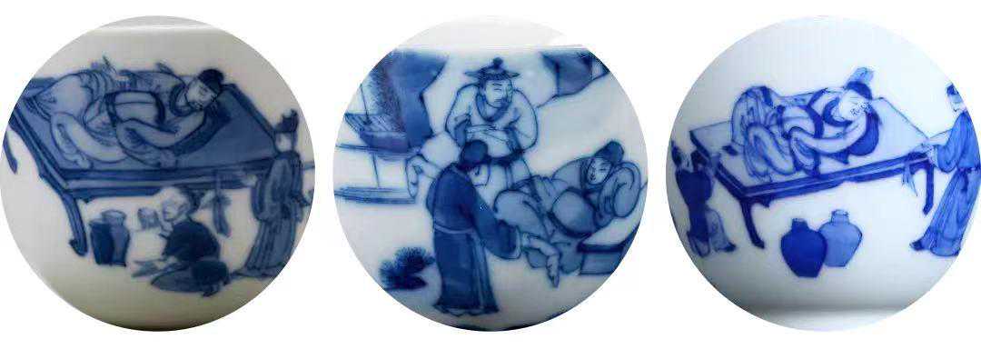 康窑绘百余人列阵之大盘,绘饮中八仙之酒器……均铮铮有名。康熙人物,无一无精。若饮中八仙,若十八学士……皆神彩欲飞,栩栩欲活。